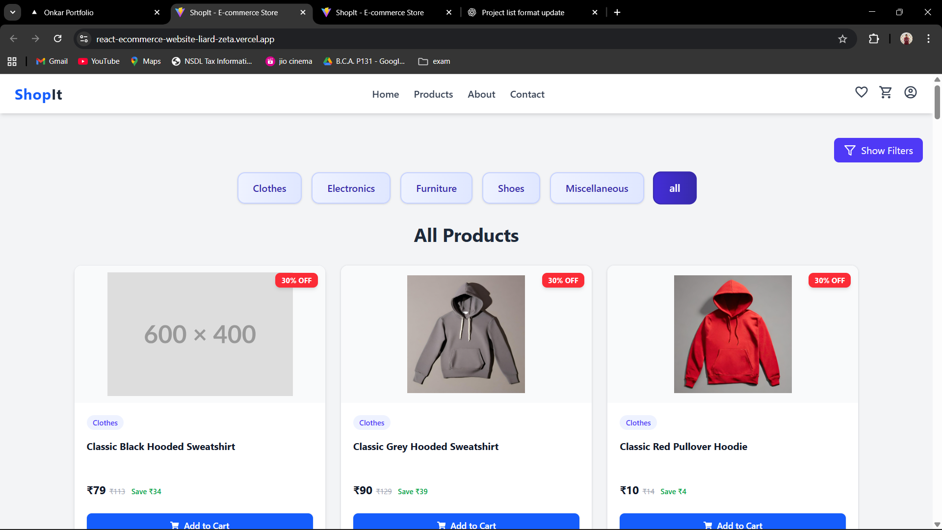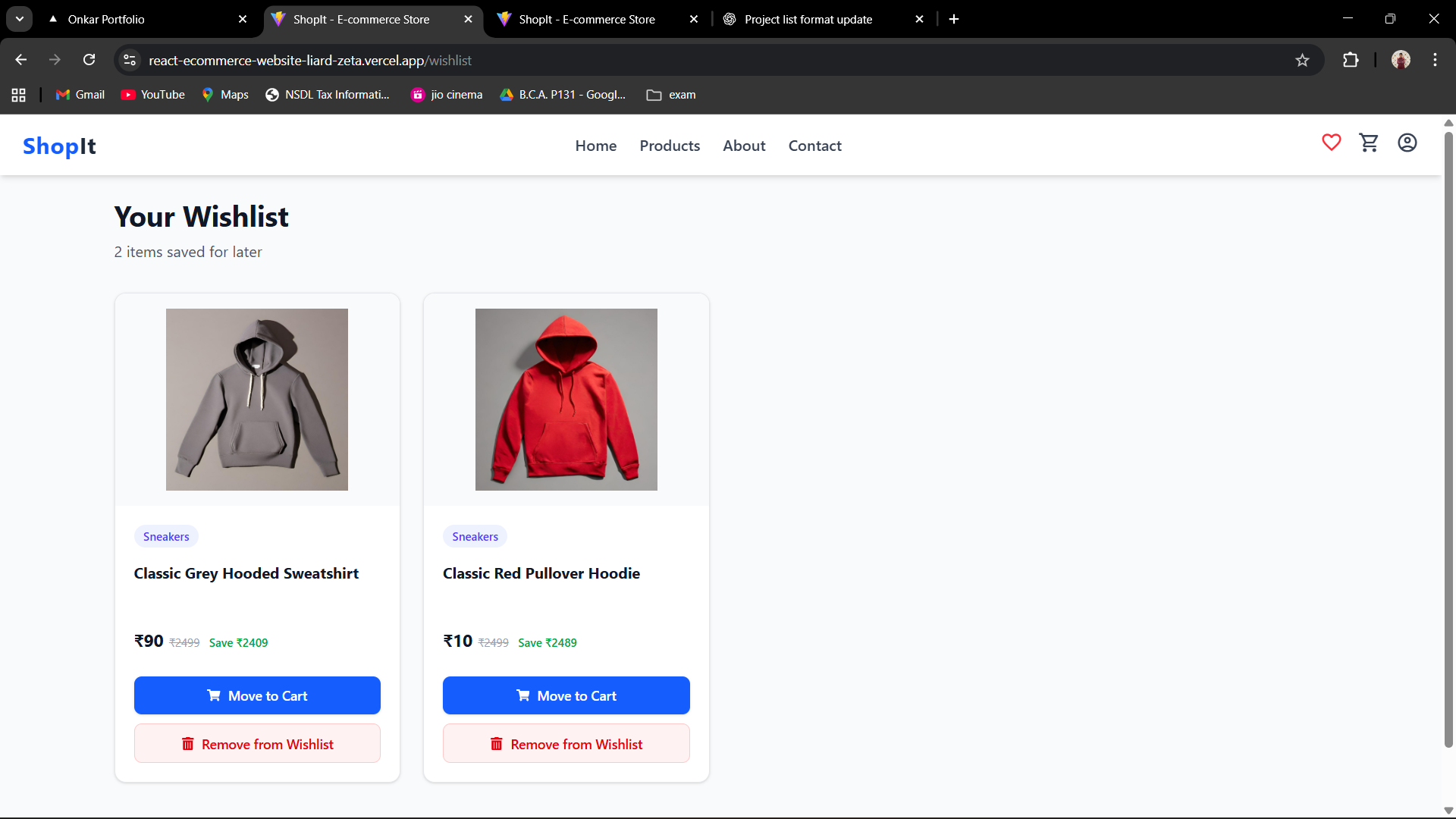 A full-featured ecommerce website built with React, Redux, and REST APIs for product listing, cart management, wishlist, and checkout experience.